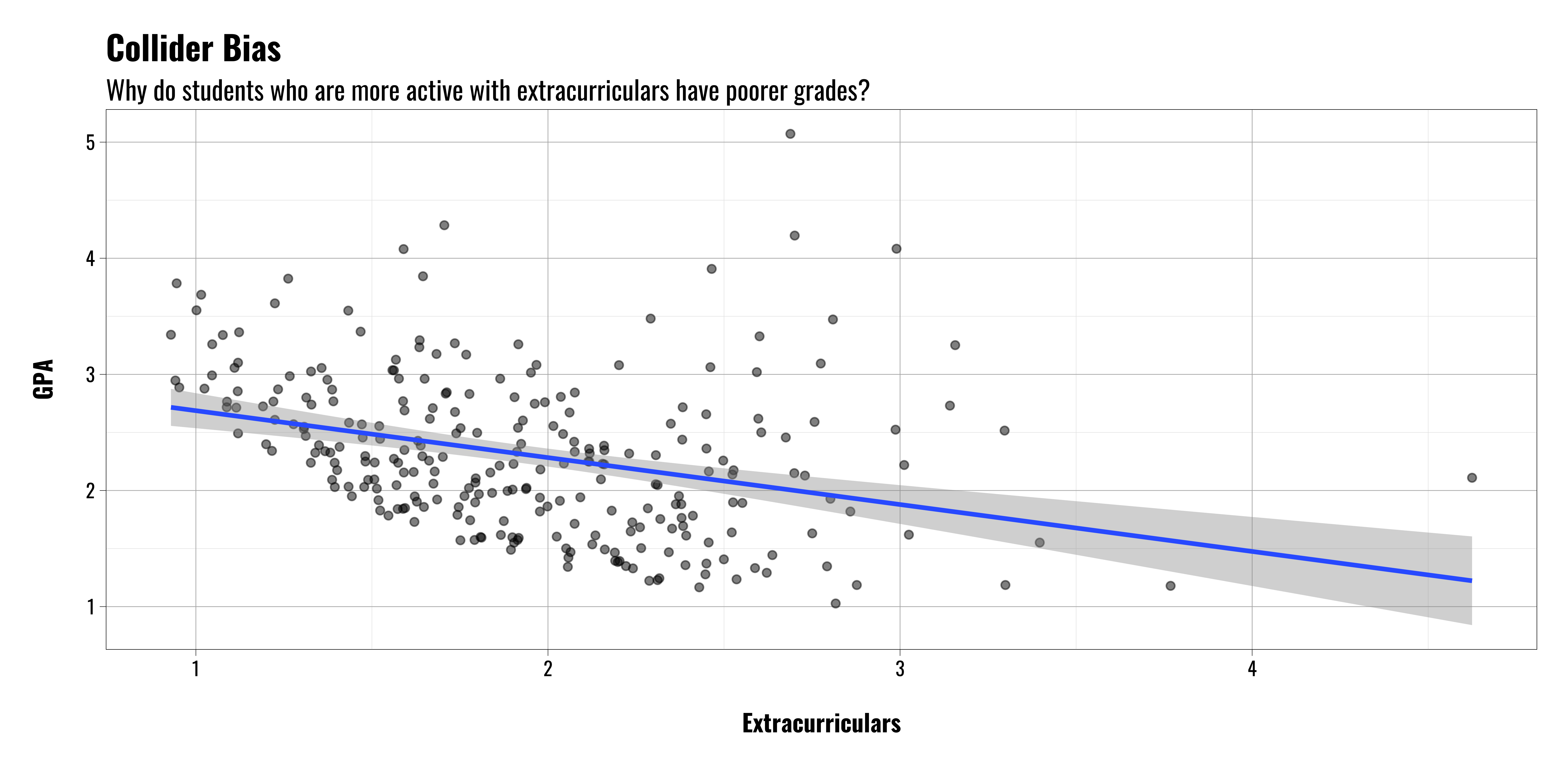 Let’s assume we’re interested in looking at students who have been admitted to college to see what the relationship is between their high school extracurricular activities and GPA