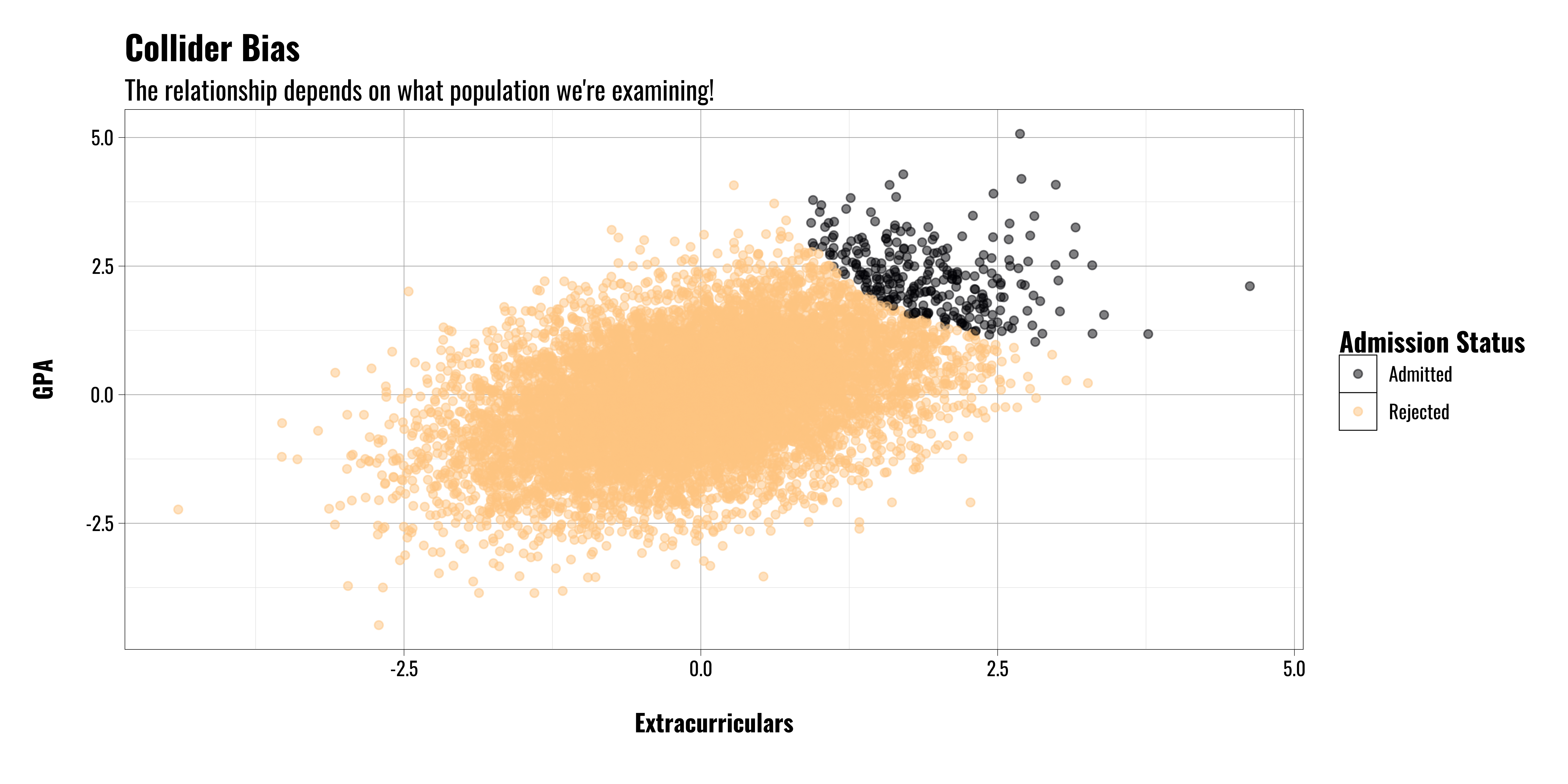 If we’re looking at students who have already been admitted to college we’re implicitly conditioning on a collider variable (i.e. acceptance/admission status)